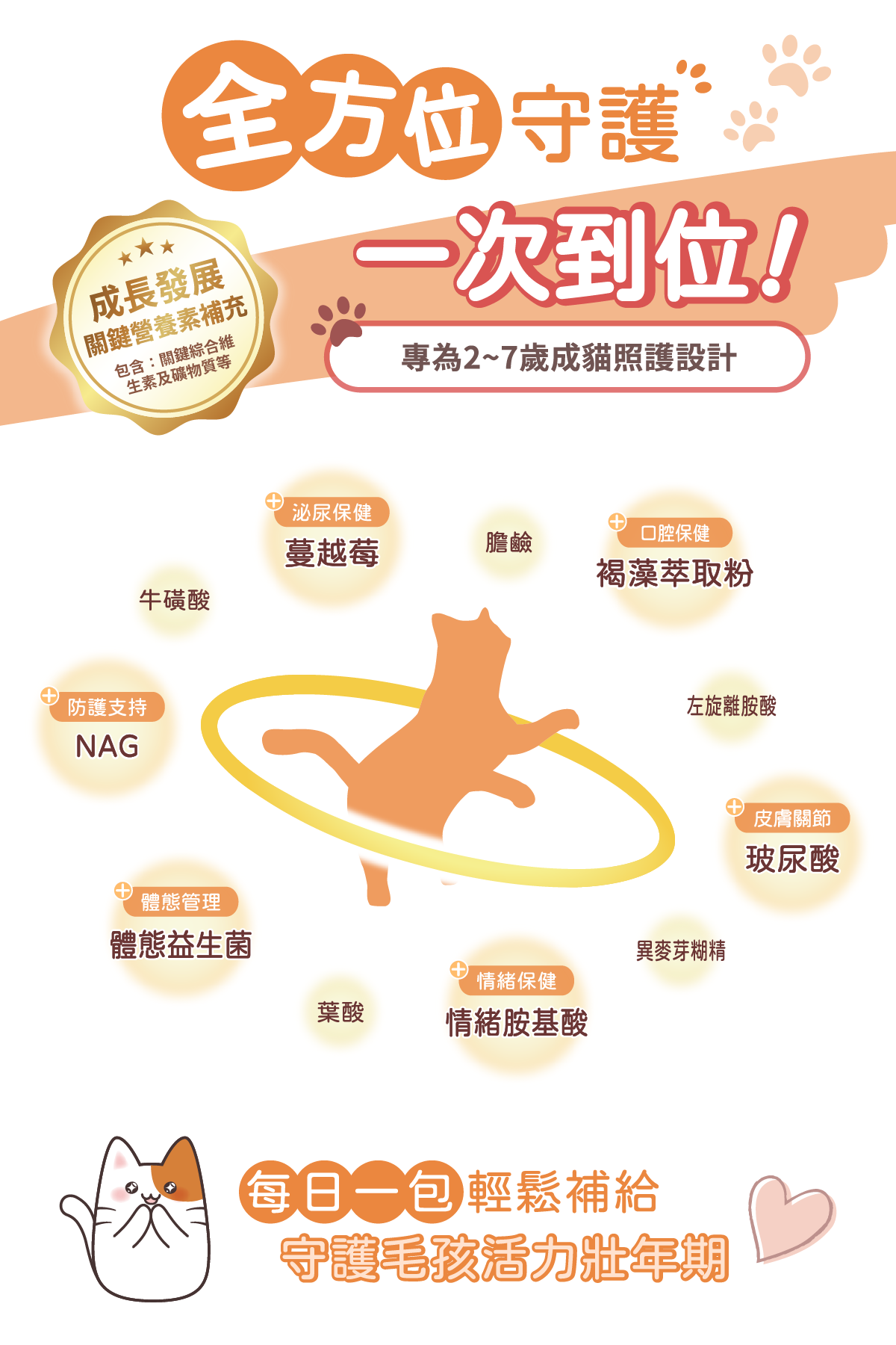 推薦2~7歲成貓每日補充。